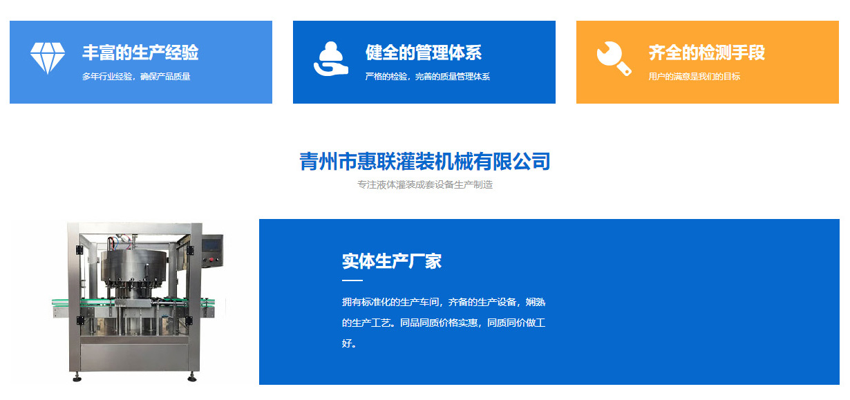 青州市惠聯(lián)灌裝機(jī)械有限公司是一家集生產(chǎn)研發(fā)、銷售、服務(wù)于一體的液體灌裝成套設(shè)備生產(chǎn)企業(yè),可根據(jù)廠家要求設(shè)計(jì)合理液體灌裝生產(chǎn)線,為用戶提供技術(shù)咨詢、設(shè)計(jì)工藝、場(chǎng)區(qū)平面布置、工藝改造、設(shè)備安裝調(diào)試等完善服務(wù)。 公司生產(chǎn)制造各種類型液體灌裝機(jī)、過濾機(jī),水處理設(shè)備及液體灌裝成套設(shè)備。主要產(chǎn)品有:白酒、葡萄酒、黃酒等酒水灌裝機(jī)、食用油、機(jī)油、潤(rùn)滑油等油類灌裝機(jī)、醬油醋、老抽、生抽等調(diào)味品灌裝機(jī)、防凍液、玻璃水灌裝機(jī)、酒精、84消毒液灌裝機(jī)、車用尿素灌裝機(jī)、口服液灌裝機(jī)、洗滌劑灌裝機(jī)等多種液體、膏體灌裝設(shè)備,全自動(dòng)/半自動(dòng)灌裝機(jī)型號(hào)多,規(guī)格全,洗瓶機(jī)、瓶子封口機(jī)、打塞機(jī)、熱縮機(jī)、瓶子烘干機(jī)、貼標(biāo)機(jī)、噴碼機(jī)、輸送線、裝箱機(jī)、水處理設(shè)備等全套生產(chǎn)線相關(guān)配套設(shè)備齊全,自產(chǎn)自銷,一站式購(gòu)齊,售后無憂。